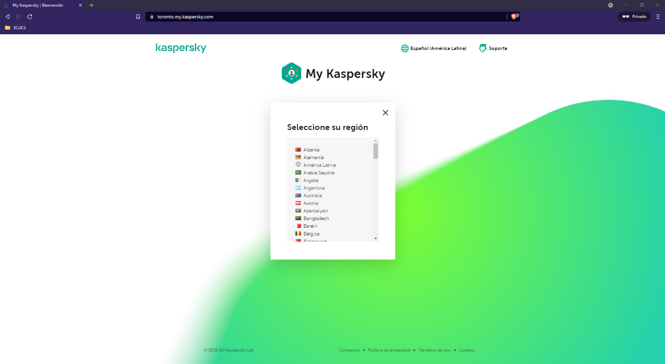 Primero debemos acceder al portal de cuentas de Kaspersky desde el siguiente enlace: https://my.kaspersky.com/